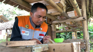 “Lebah Trigona ini lebah tanpa sengat, tapi manfaatnya besar sekali. Selain membantu penyerbukan tanaman, madunya juga punya nilai ekonomi tinggi,” ujarnya.